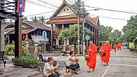 Un réveil à bonne heure est conseillé pour assister à la cérémonie de l'aumône du matin vers 5h40, aui est un rituel sacré traditionnel. Ce matin, visite de magnifiques Vat Xieng Thong et Vat Visoun. Le Vat Xieng Thong, le temple le plus célèbre et le plus beau à Luang Prabang, où se trouve aussi des stupas exquis. Ensuite visite du Palais Royal, où se trouve tous les objets religieux royaux. Puis transfert à l'aéroport et envol pour Siem Reap. À l'arrivée, acceuil et transfert à l'hôtel, puis temps libre.